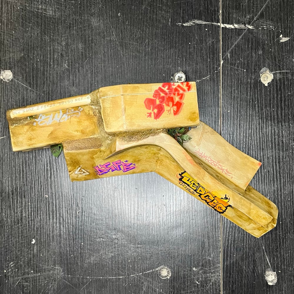 This is a completely unique obstacle from anything we've ever made at Level Ledges. It was created from a Sledge Ledge and a Holo A-Frame. The pieces have been joined permanently with concrete.